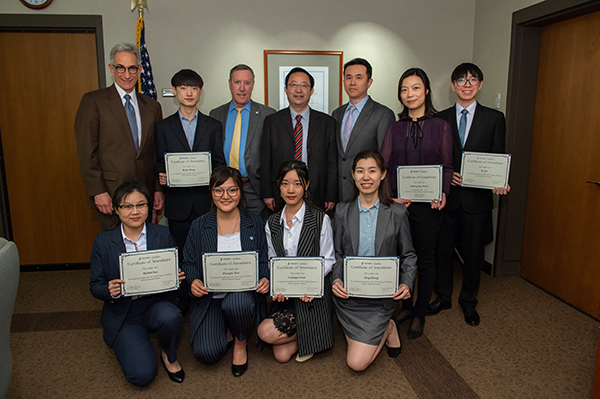 学生们现场展示了其在课程学习、社会实践及个人生活等方面的收获,他们的成熟、自信及语言和学业上的进步给在座专家留下了深刻的印象。东北俄亥俄医科大学校长Dr. Gershen、副校长兼药学院院长Dr. Kasmer高度评价了学生们的在校表现,并依次为其颁发了结业证书。我校药学院院长陈飞虎一行应邀出席了典礼,并与美方讨论了未来的合作计划。