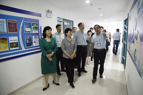 王翠凤先后调研了安徽省创新药物研究院、人口健康与优生安徽省重点实验室、环境毒理学实验室、抗炎免疫药物教育部重点实验室、创新创业成果展、校史馆等。调研过程中,王翠凤与师生、科研人员进行亲切交谈,深入了解有关师生的学习工作情况。她对我校学科建设和科研工作取得的成绩表示赞赏,对我校高水平医科大学建设取得的进展给予充分肯定,勉励大家继续努力,为服务健康安徽和现代化五大发展美好安徽建设作出新的更大贡献。