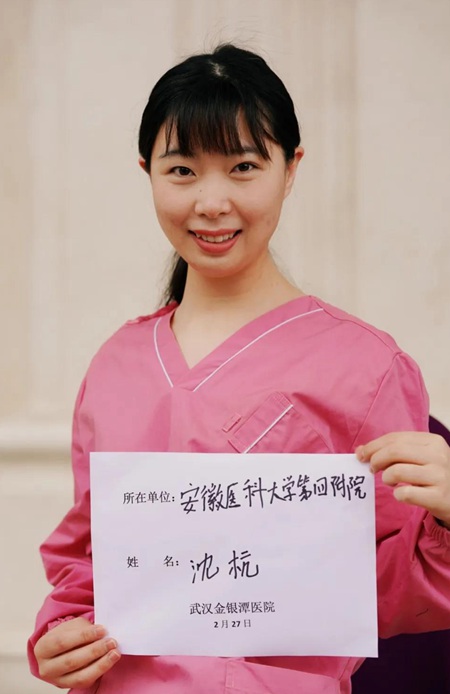 1月26日夜,安徽省集结了185名队员组成安徽第一批支援湖北医疗队,沈杭成为首批队员之一,并被分配到武汉金银潭医院的ICU病房。