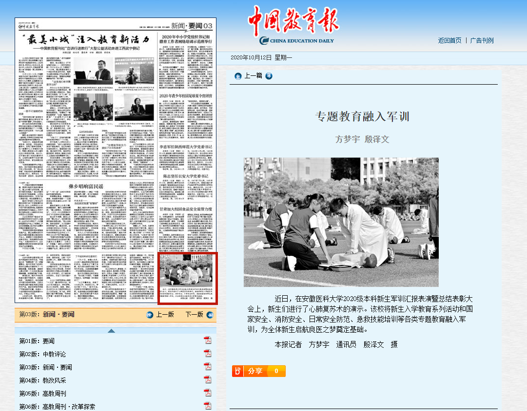 中国教育报:专题教育融入军训