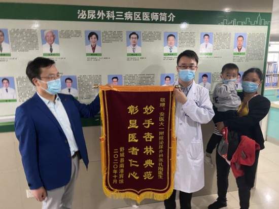 “妙手杏林模范,彰显医者仁心。”10月13日一早,被救孩子的妈妈带着孩子还有当时事发酒店的锦旗和感谢信,来到了一附院泌尿外科,向张礼刚表示感谢。“要是没有张医生我都不知道孩子会怎么样,非常感谢!这真的是救命的缘分!”
