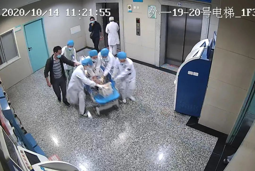 “这种情况下,挽救患者生命是第一位的,我们要把握心肺复苏的黄金时间。”张进进说道,“团队的每一名医护人员都竭尽全力抢救患者,抢救环节稍有差错就会危及患者生命,不夸张地说,如果患者当时在院外,可能人就没了。”图为电梯里依然在按压抢救。