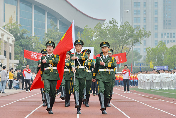 开幕式举行了隆重的入场仪式,20支学生代表队和24支教职工代表队穿着统一队服,以饱满的精神、整齐的步伐依次通过主席台。入场仪式完毕,全场起立,高唱中华人民共和国国歌。