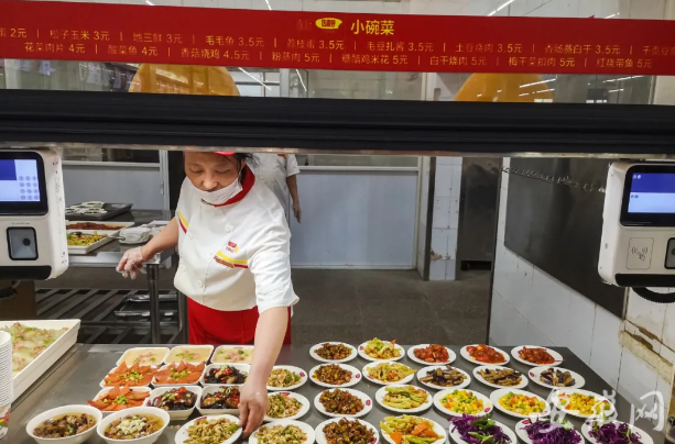 该校食堂经理曹经理表示,食堂就餐制度的新变化,既是响应勤俭节约的号召,也是节约文化建设的任务。 “我们首次推出了自带餐盒就餐、份菜、拼菜等新就餐体验,最大程度地结合同学们的需要和节约文化建设的要求。”