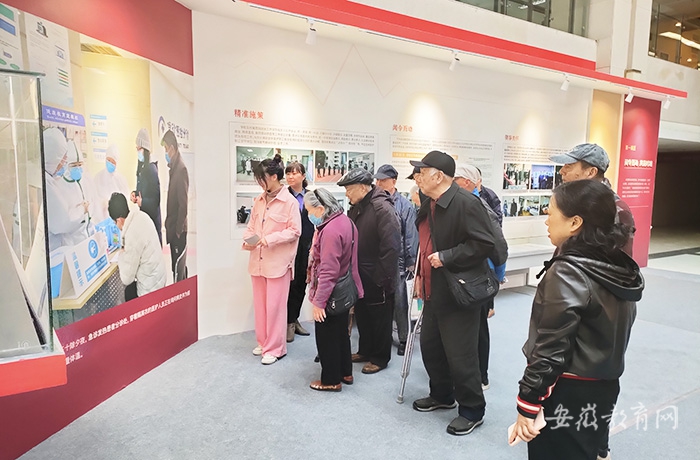 “当年是‘非典’,去年是新冠肺炎,没有共产党领导,没有这么大的气魄和坚定的行动力,这场仗,难!”“重大疫情发生的时候,好像一直都能看到我们安医人的身影啊,现在学校里读书的医学生们也都应该来看看……”3月23日,来自离退休教职工党委的老党员们拄着拐杖,一边缓慢移步参观抗疫展,一边交流感慨道。他们中大多数已九旬高龄,但学习热情不减,对学校事业发展也依旧关注,抗疫展中描述的人和物仿佛也将老同志们拉回到他们年轻时牢记初心使命、践行职业精神,为护佑人民群众健康、助力祖国医疗卫生事业发展的激情岁月中。