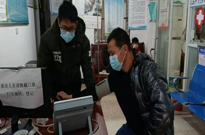第一临床医学院2019级医学影像学专业吴香同学、2021级临床医学专业许辉川同学、公共卫生学院2021级食品卫生与营养学专业杨莹同学返乡后,各自成为了当地医院的志愿者。志愿服务中,他们在自助服务区进行导诊,帮助就诊人员使用证件进行网上预约、自助挂号及缴费等操作,或者协助病患家属办理住院手续。同时,大家还会利用在学校学到的医学知识,为病人测血糖、血压,并提供关于日常保健的科学建议。巢湖临床医学院2021级临床医学农村订单定向免费医学生李羽彤在乡医院参与志愿服务,既在医院门口核查进出人员安康码和身份信息,又协助医护人员统计回乡人员的核酸检测报告信息、登记入院者信息、开具发热人员登记表等。
