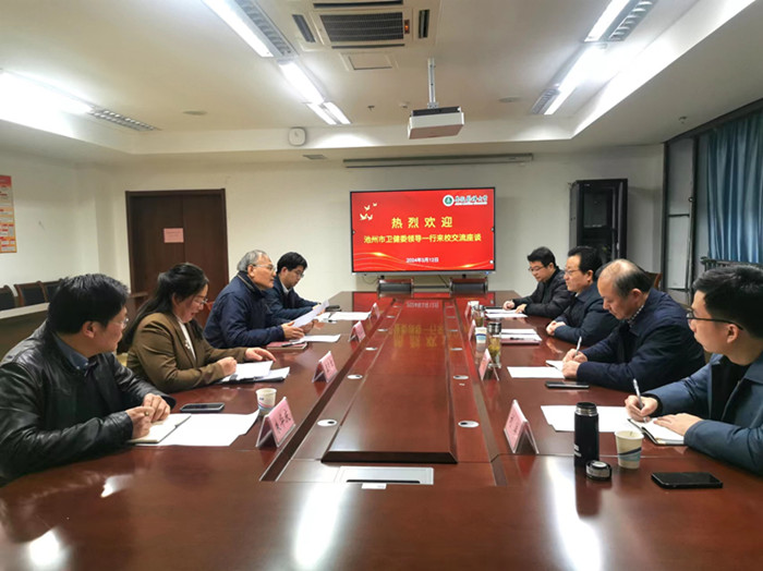 3月12日下午,池州市卫生健康委党组书记、主任、二级巡视员刘保权一行来校,就深化合作事宜展开交流。校党委常委、副校长余永强主持座谈会。
