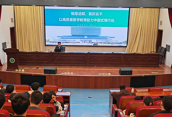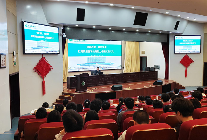 4月11日晚,校党委书记顾家山在图书馆第一学术报告厅为2023级本科生讲授了题为《锐意进取、真抓实干,以高质量医学教育助力中国式现代化》的“形势与政策”课。