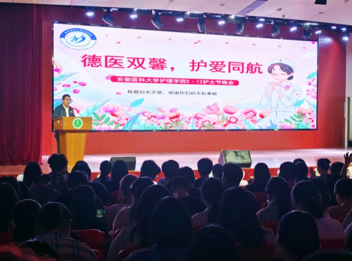 5月12日,护理学院在南校区多功能报告厅举办主题为“德医双馨、护爱同航”的国际护士节文艺晚会,纪念第113个国际护士节的到来,弘扬南丁格尔精神。副校长吕雄文出席并观看演出。