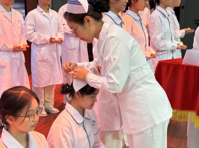 晚会上举行了授帽宣誓仪式。第一附属医院护理部主任胡少华、第二附属医院护理部主任杨锡瑶为护理学院32名护生戴上圣洁的燕帽,让南丁格尔精神在新一批“白衣天使”中传承。护生们集体举起右拳,庄严宣誓。