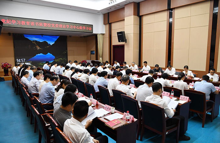 6月28日下午,学校举办党纪学习教育读书班暨校党委理论学习中心组学习会议。会上深入学习了习近平总书记关于全面加强党的纪律建设的重要论述,传达学习了党中央、国务院以及教育部、省政府印发的有关文件精神。校党委书记王琦讲授“七一”专题党课。校党委副书记谢瑞瑾主持学习会,校党委常委、校领导余永强、肖圣龙、吕雄文、黄新美、徐朝阳参加学习。校纪委书记黄新美对学校和直属附属医院近年来被查处严重违纪违法案例进行通报及剖析,副校长徐朝阳领学了《中国共产党纪律处分条例》部分内容。