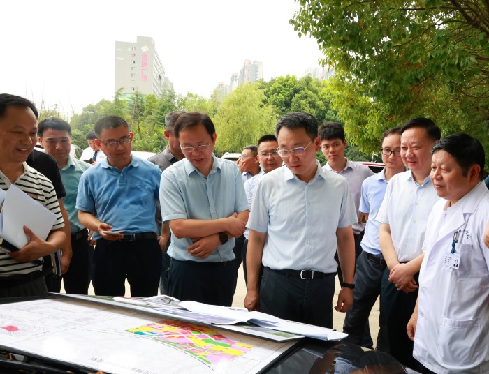 7月16日下午,合肥市副市长何逢阳一行前往我校第二附属医院,就齐云路建设规划和二附院牵头的安徽省国际医院建设规划进行实地调研。