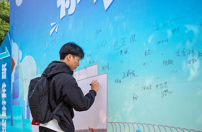 各具特色的展板、温馨的欢迎条幅、活泼生动的“打卡”框、趣味十足的手牌、仪式感满满的签名墙……报到现场处处是迎新的热烈氛围。在学校的统一部署下,从新生接站到进校报到再到各类手续办理,各部门、各学院积极主动、通力配合,扎实落实迎新各项工作,确保各环节对接顺畅,服务保障到位。工作人员和学生志愿者们热情的态度和细致的服务,得到新生和家长的一致赞扬。