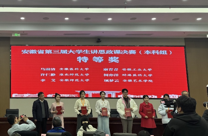 12月25日,由中共安徽省委教育工委主办的安徽省第三届大学生讲思政课决赛举行,我校马克思主义学院2023级研究生马雨洁团队勇夺特等奖,团队指导教师马金琳、周师获“优秀指导教师荣誉。