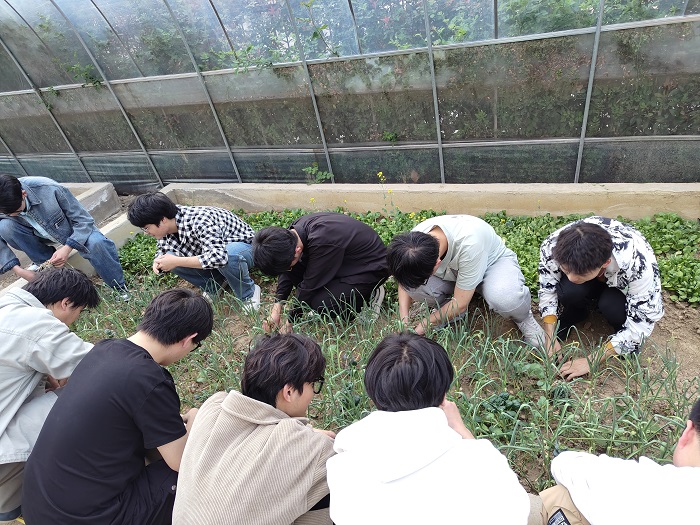 躬耕田园,体悟劳作实践意义。充满烟火气的“从田间到餐桌”农耕体验活动在该院劳动实践大棚展开。学生们收获亲手种植的蔬菜,经历清洗、切配、烹饪全过程,最终汇集成“劳动的味道”主题宴席。从泥土到美食的蜕变,同学们在互相配合中真切体会到“一粥一饭来之不易”。“炒菜时火候的掌控就像做实验一样需要耐心,来不得半点偷懒。”2024级医学信息工程专业姜高译航说道。