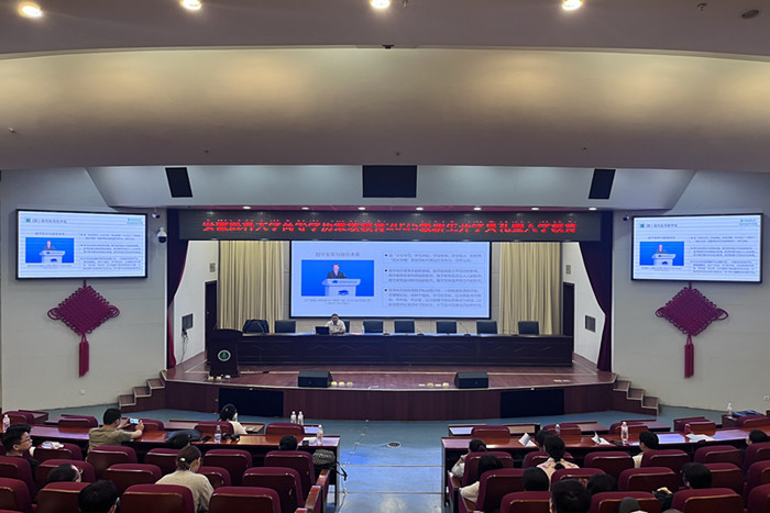 典礼后开展《开学第一课——以心自助,筑梦新程》视频教学,围绕学籍管理、教育教学、学位申请、学业规划等为新生作入学教育专题培训,通过实地参观校史馆、观看视频宣传片、发放校徽纪念章等方式开展校史院情教育,进一步增强新生荣誉感、归属感和使命感。